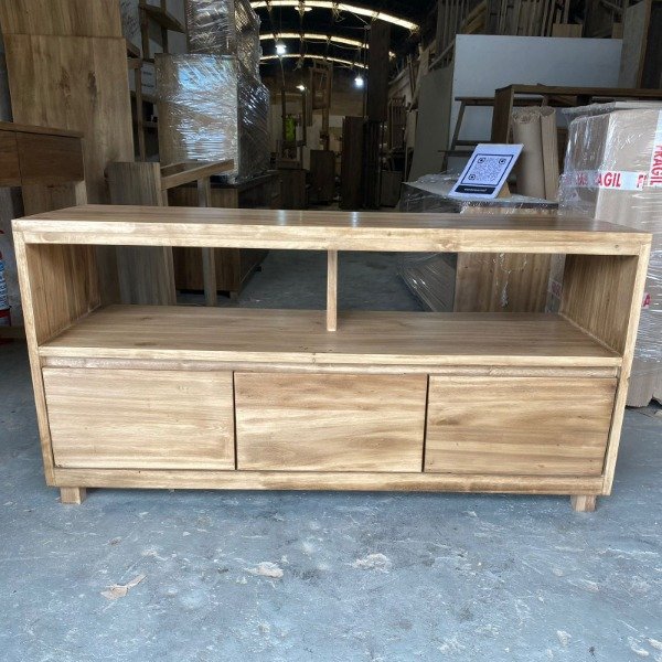 Construido con materiales de alta calidad, el Rack Lujan está diseñado para ser duradero y resistente. Puedes elegir entre mantenerlo en su acabado natural de alamo crudo, listo para que puedas personalizarlo según tus preferencias, o con un lustre similar al petiribi que realza la belleza natural de la madera.